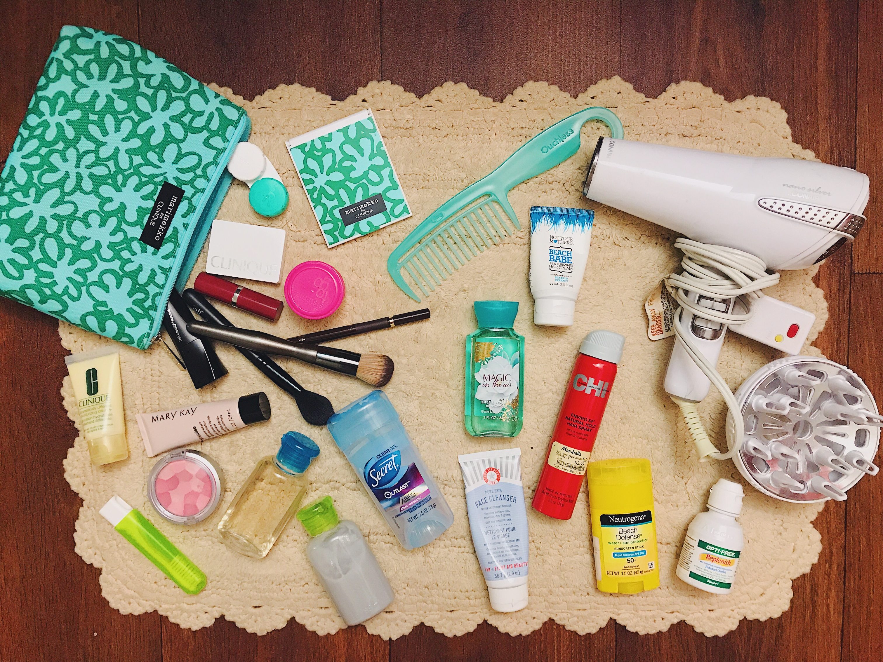 When flying, make sure to double check with TSA regulations before heading to the airport. Also, make sure that your liquids are in 3 oz containers or smaller and can fit in a clear quart size bag. I always keep this bag in my purse/tote so I don’t have to tear through my luggage at security.